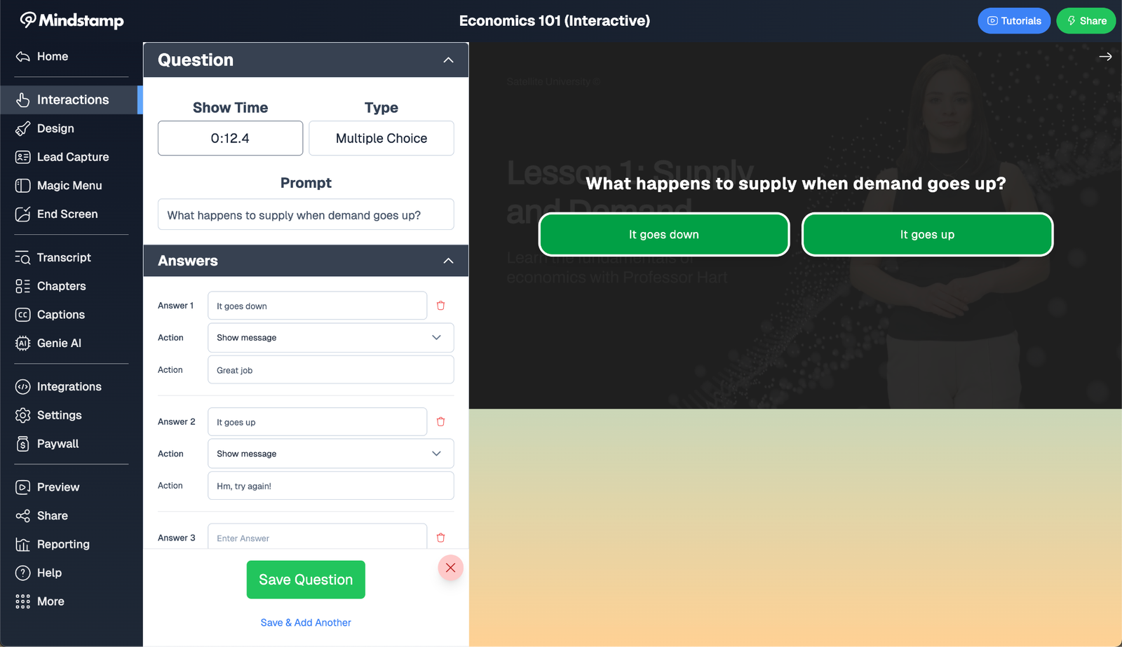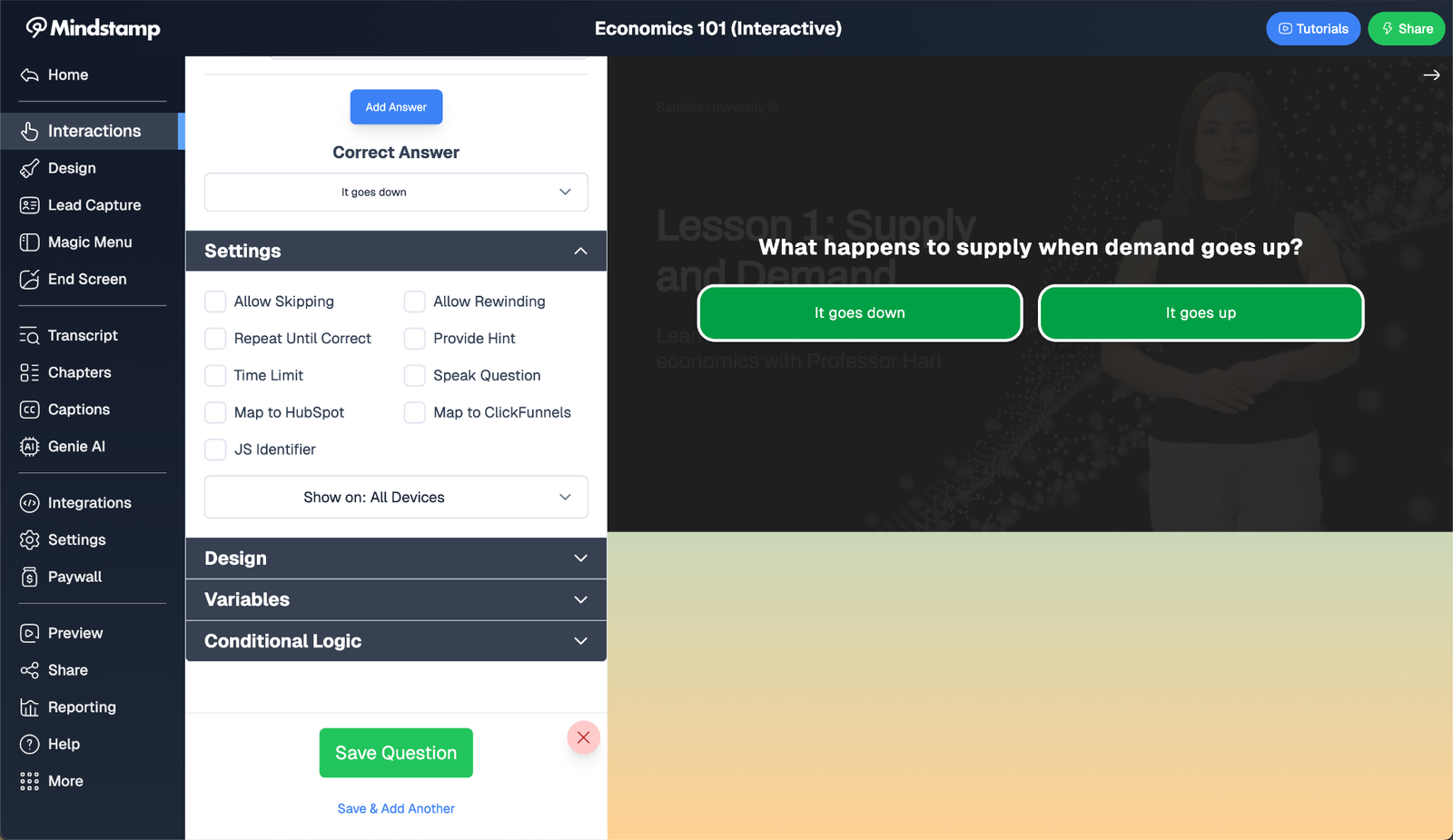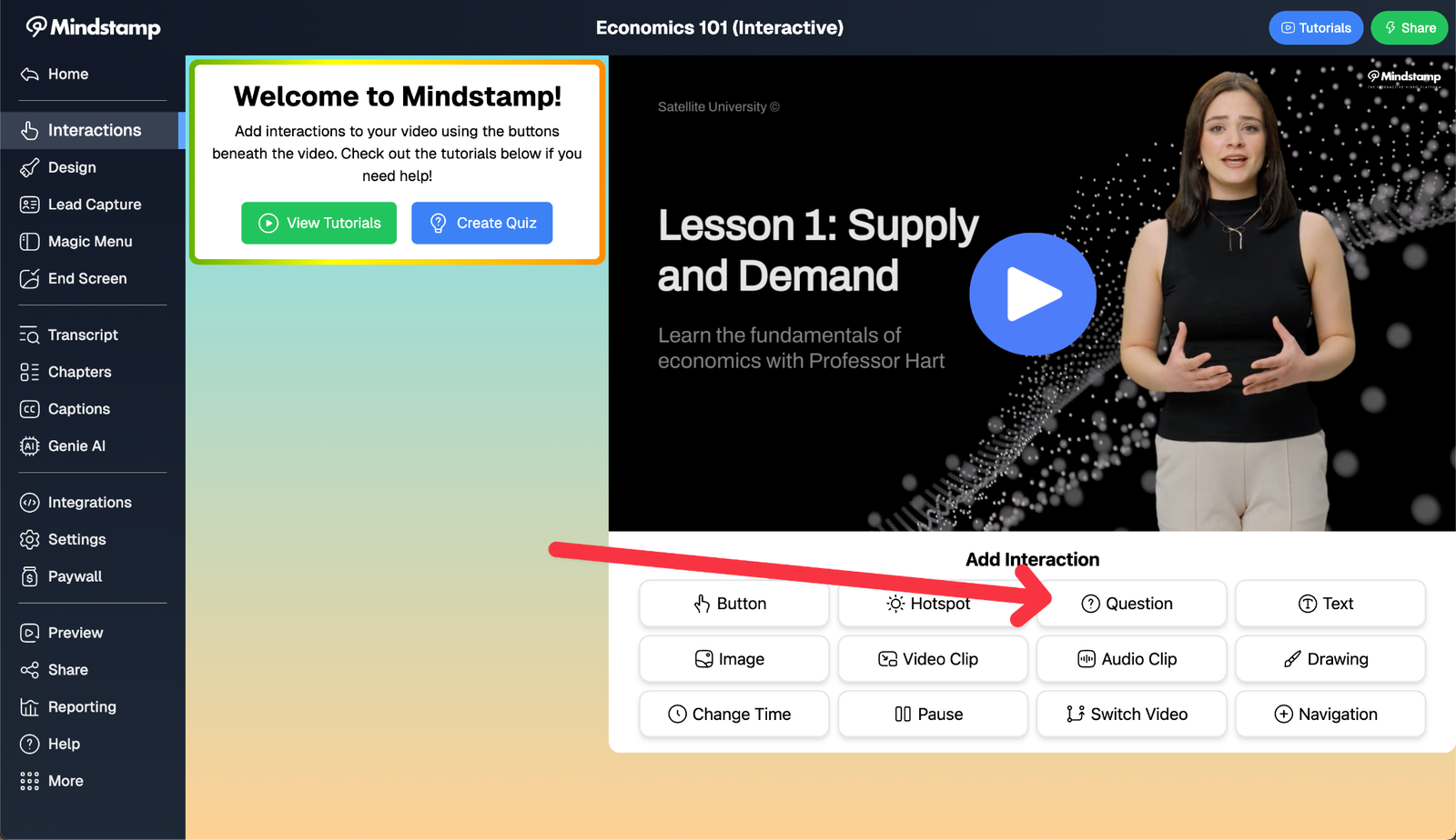 If you prefer to assemble the quiz yourself, Mindstamp still makes it simple. Head over to our easy-to-use editor for the video of your choice and look for the question interaction: