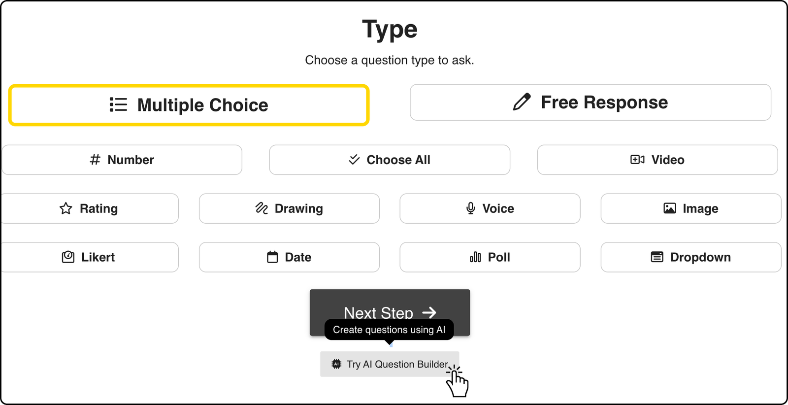 Once you’ve chosen to add a question, opt for the AI Question Builder feature to let the AI take the lead.