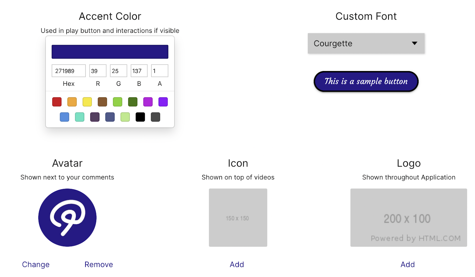 With Mindstamps thoughtful design settings, you’re able to perfectly capture the color of your brand, school, team, etc. in-video. Keping video content consistent with your other communications or material is a must if you’re serious about making a good first impression with students or clients! You can customize the color of almost anything platform-wide including buttons, hotspots, question answer bubbles, comments, text, and more.