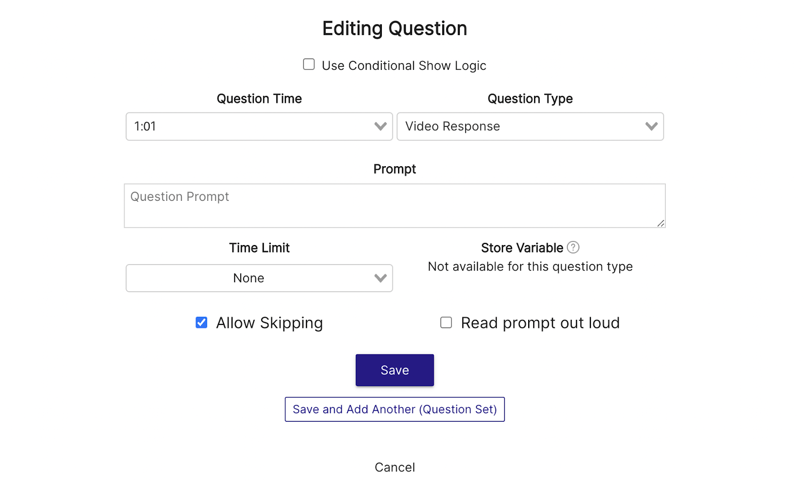 Setting up a Video Response question is easy! Simply click on the Question interaction and select “Video Response” under the Question Type. Once it’s selected, simply add your prompt, choose a time limit (if applicable), then hit save. Your viewer's experience will pause when the question appears and they’ll be prompted to record a video on the spot.