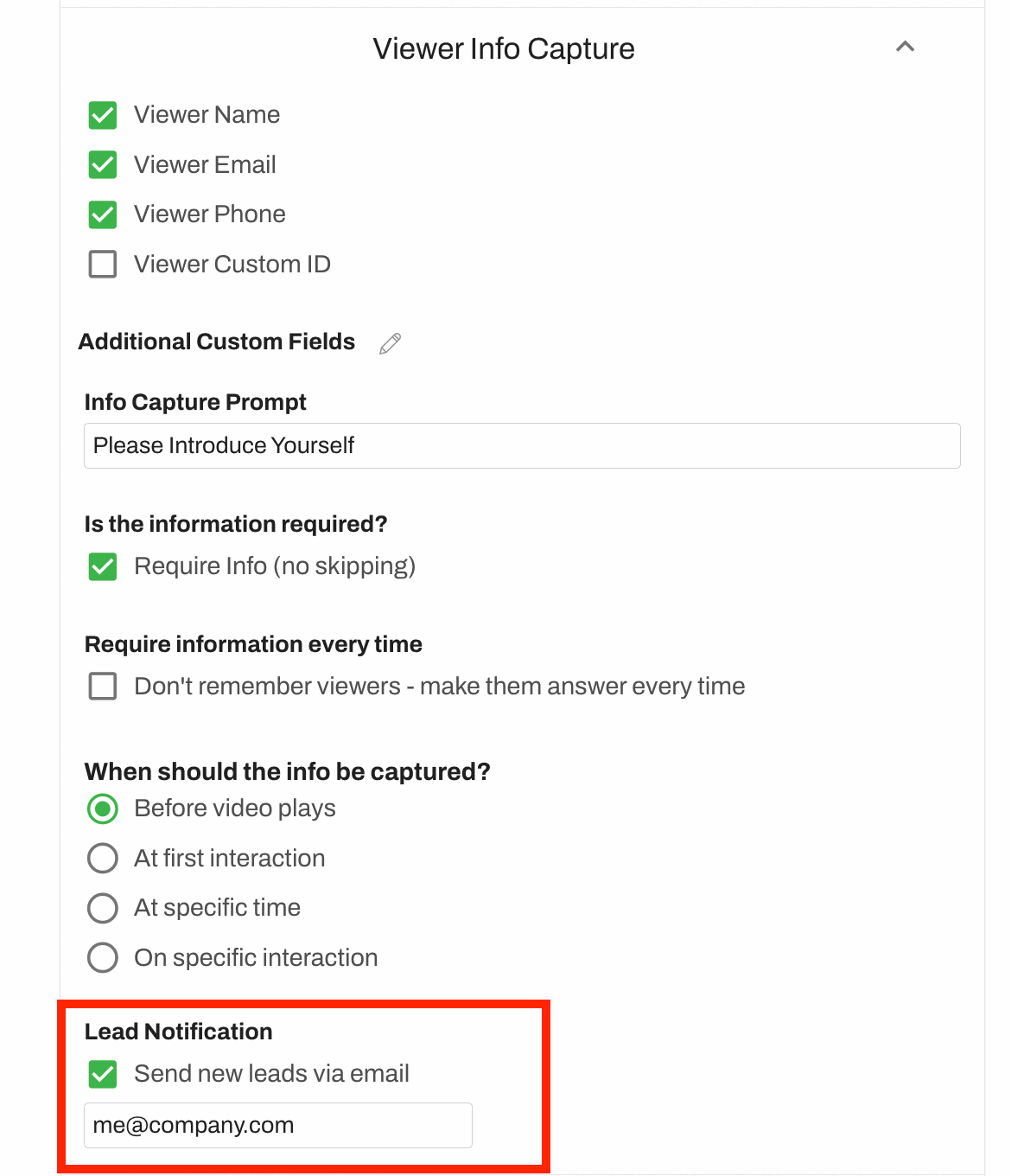 Core, Pro, and Enterprise subscribers will now see a Lead Notification setting in Viewer Info Capture.