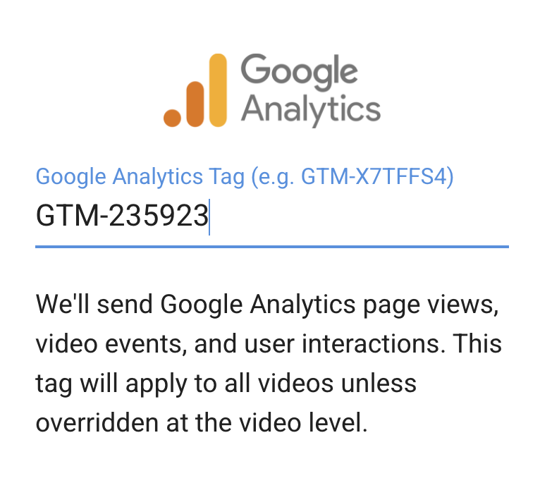If you’re a Core or Enterprise Mindstamp subscriber you can add a custom Google Analytics tracking tag at either the Account (applied to all videos) or Video level.