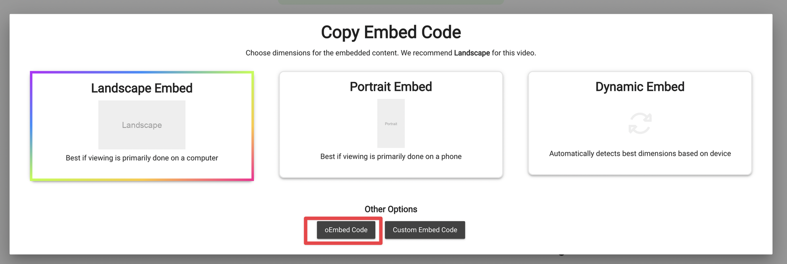 oEmbed is a popular embedding service that many Content Management Systems rely on to embed third party content, such as a Mindstamp interactive video.