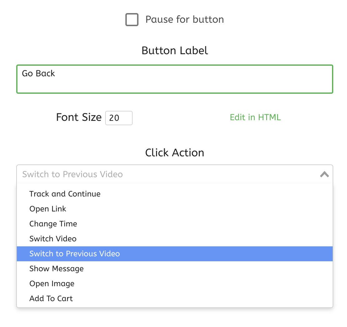 We've made it easier than ever to get back to that video by adding a Switch to Previous Video click action. This is critical if there are multiple entry points into a single video and you want to maintain a consistent experience for the viewer by offering a quick return to the previous step.