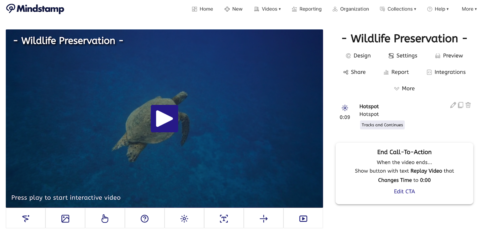 What your viewer does at the end of your interactive video can be just as, or more important than what they do during the video. While Mindstamp has always had a customized end call-to-action available within the settings of your video, we’ve recently brought it out to the main screen of the editor to emphasize its importance and simplify access.