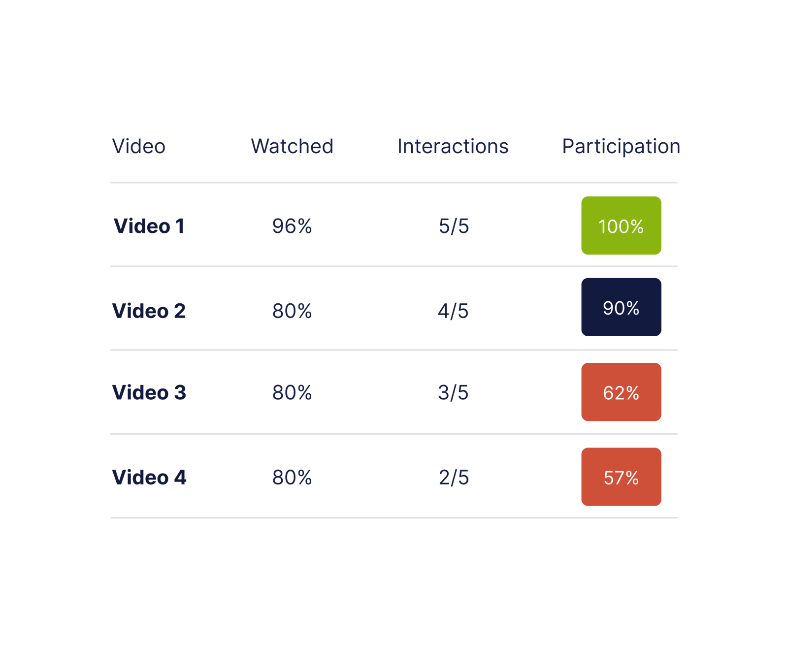 Make sure your learners are watching your video content, comprehending the topics based on in-video questions, and accessing incremental materials where appropriate.